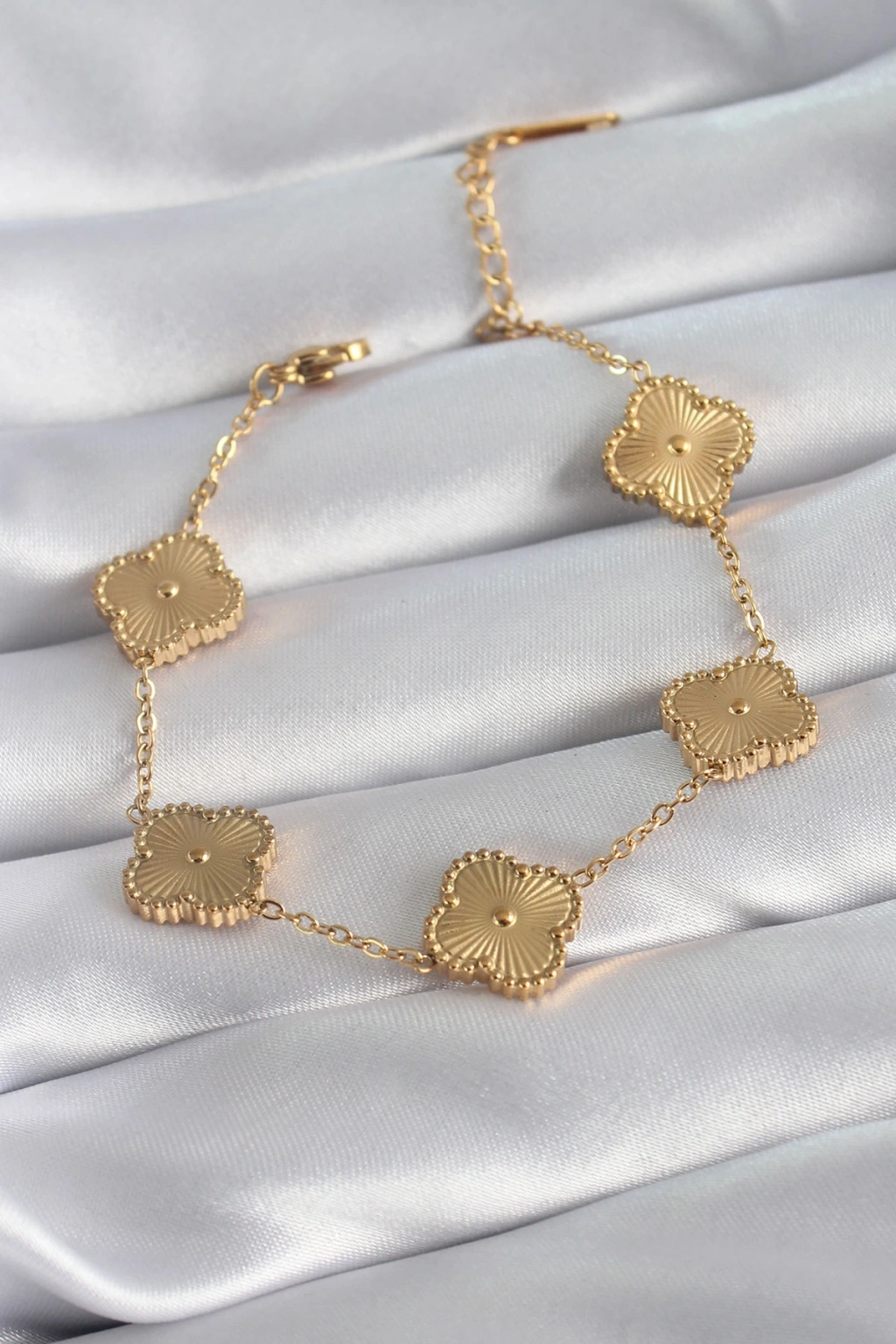316L Çelik Gold Renk Yonca Model İşleme Detay Kadın Bileklik