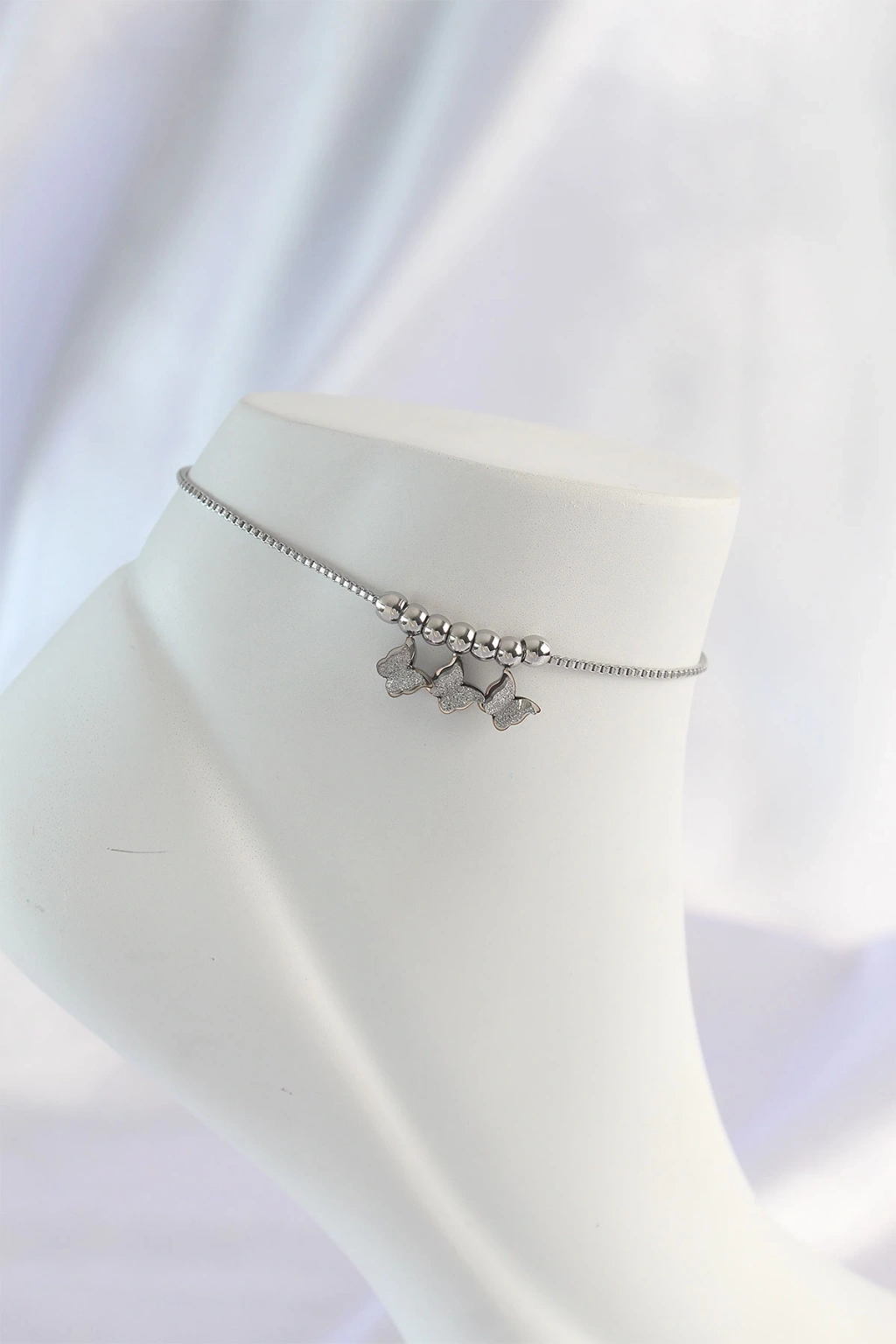 316L Çelik Gümüş Renk Simli Kelebek Model Kadın Halhal