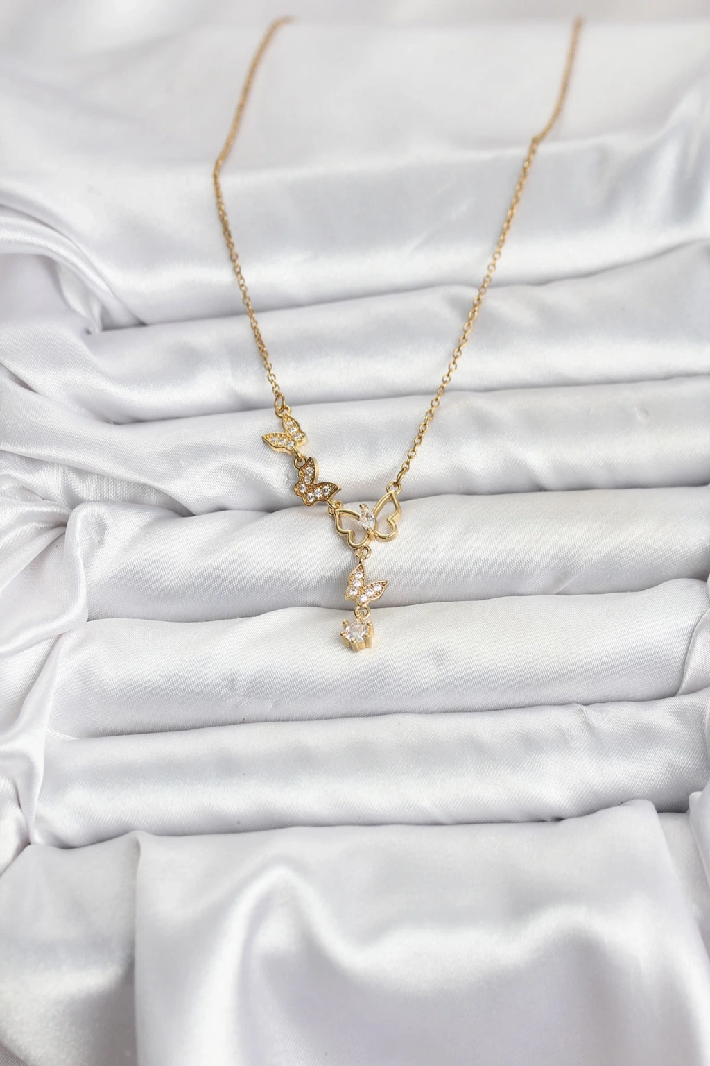 316L Çelik Zincir Gold Renk Kelebek Model Kadın Kolye