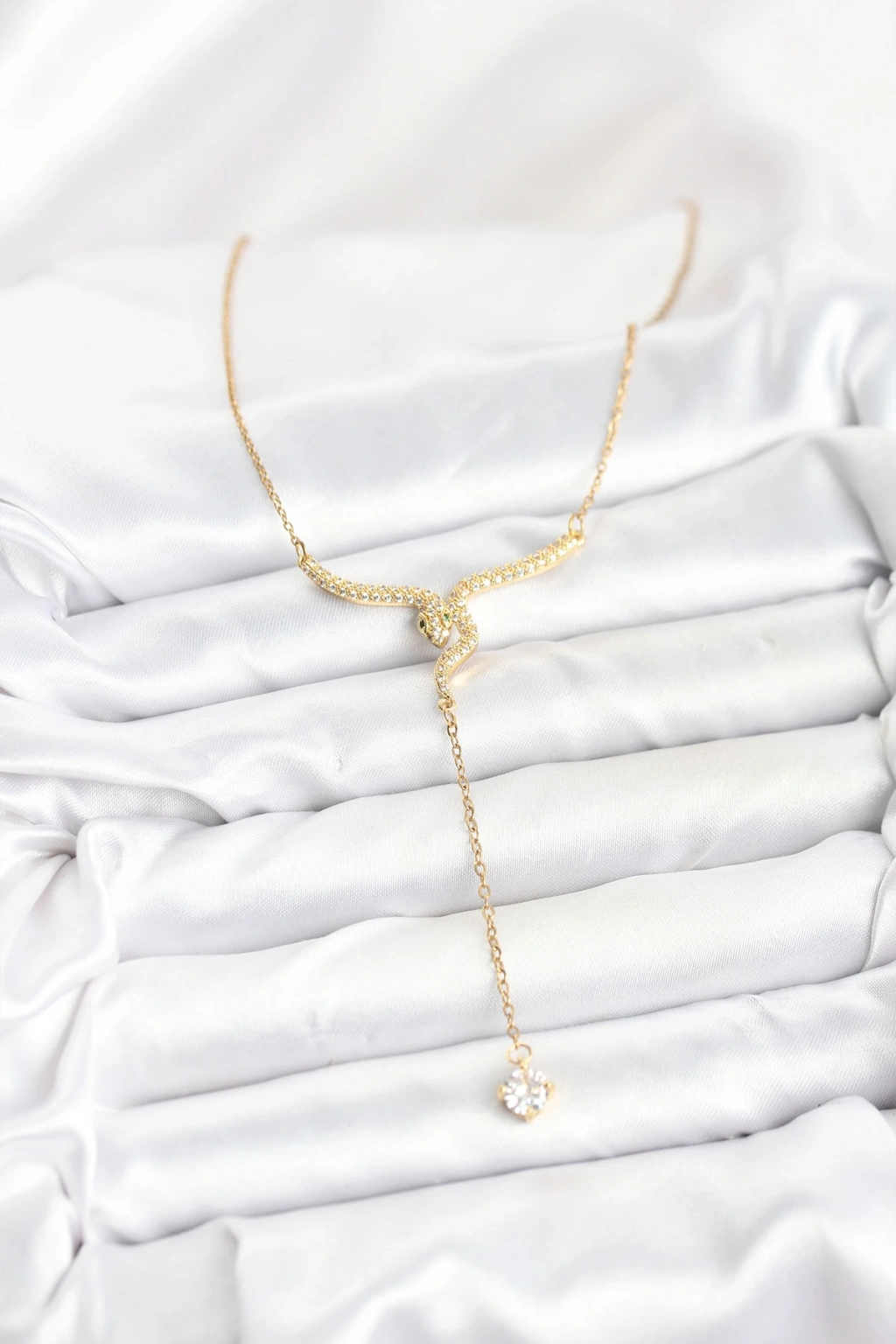 316L Çelik Zincir Gold Renk Yılan Model Y Kolye