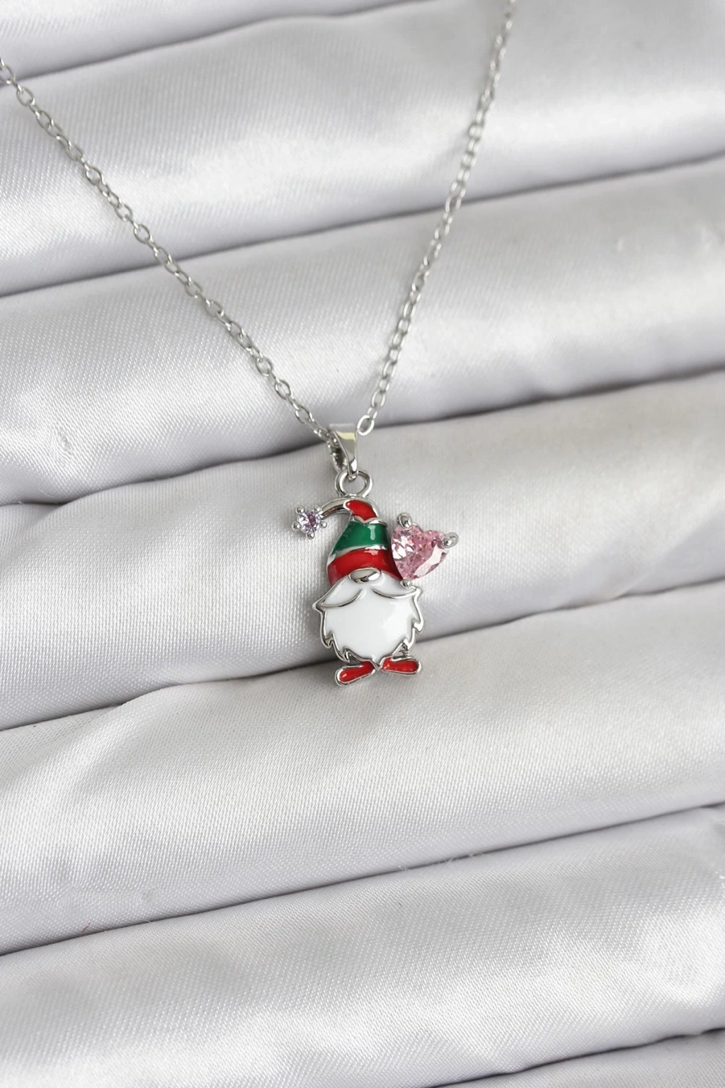 316L Çelik Zincir Gümüş Renk Yılbaşı Teması Kadın Kolye