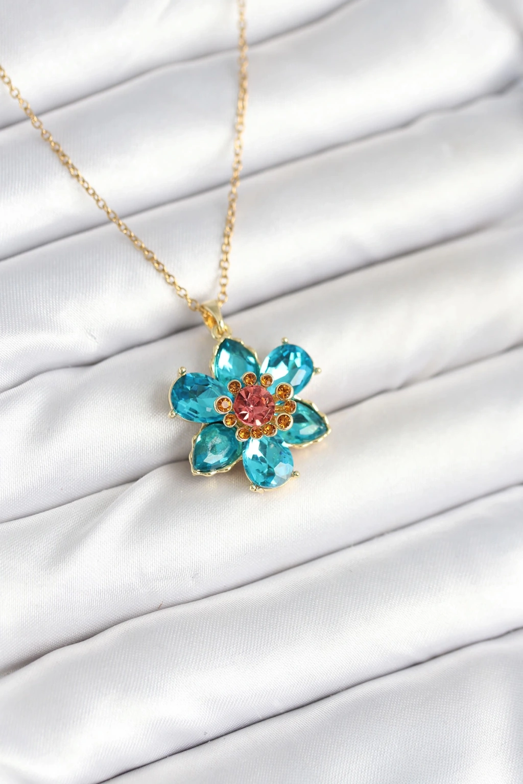 316L Çelik Zincirli Mavi Çiçek Model Kadın Kolye