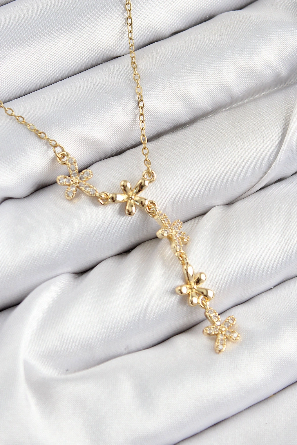 316L Çelik Zirkon Taşlı Çiçek Model Gold Renk Kadın Kolye