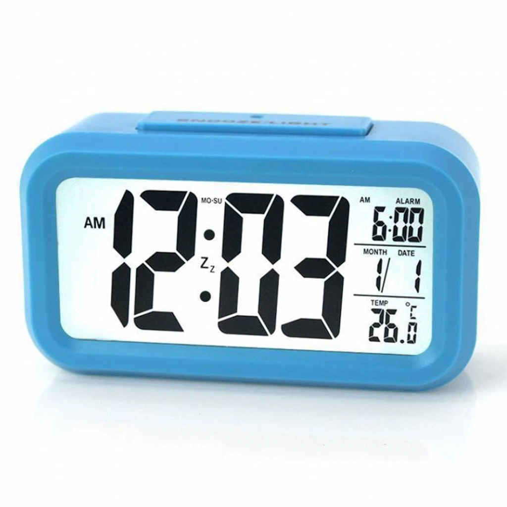 Akıllı Dijital Masa Saati Alarmlı Karanlık Sensörlü Fotoselli Mavi