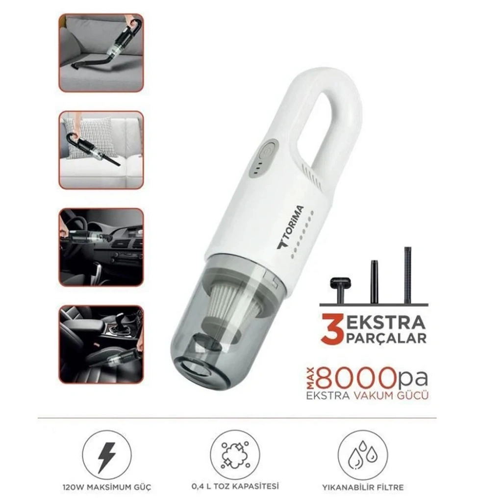 El Tipi Elektrikli Süpürge, Şık Ve Zarif Ergonomik Eğrilerle Doğmuştur, Sadece 0,55 Kg Ağırlığında Olup Kompakt Bir Yapıya Sahiptir. El Tipi Elektrikli Süpürge, Yüksek Güçlü Temizlik Sağlayan Benzersiz Bir Gürültü Azaltma Sistemine (≤ 75 Db) Sahiptir.