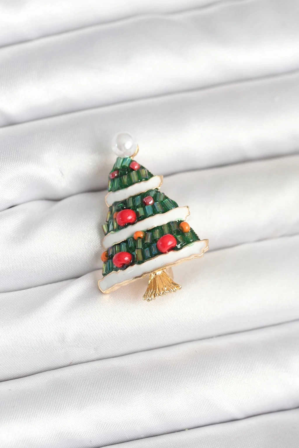 Süslü Çam Ağacı Model Yılbaşı Temalı Broş
