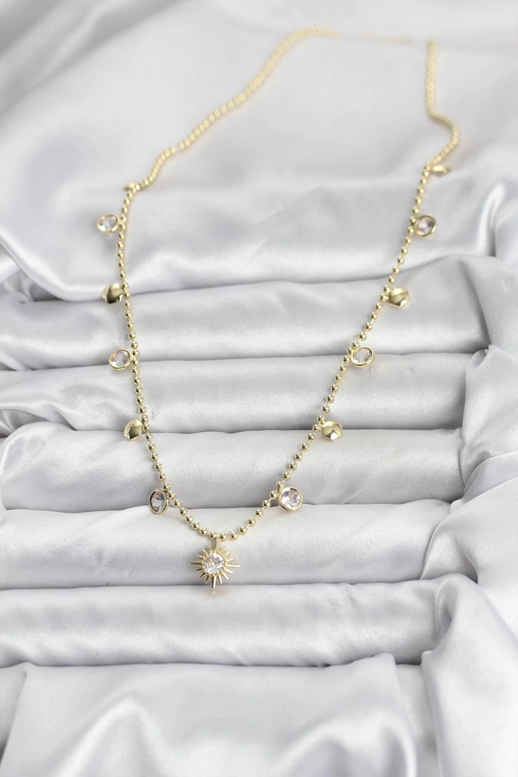 Zirkon Taşlı Kutup Yıldızı Model Pirinç Gold Renk Kadın Kolye