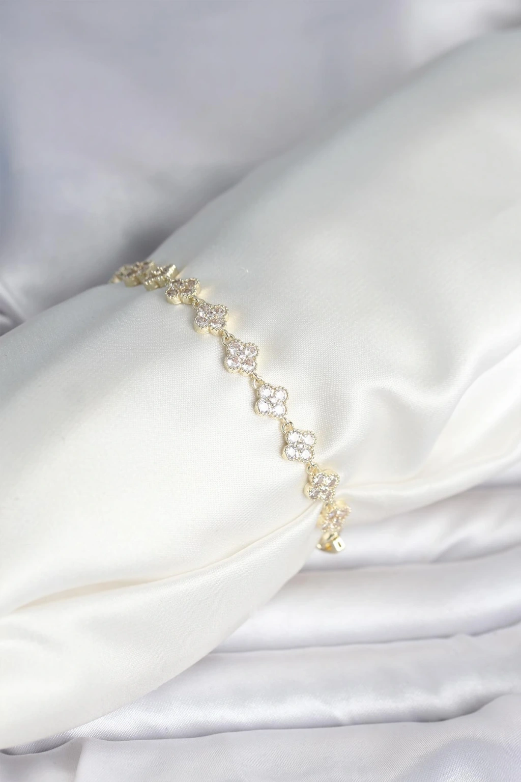 Zirkon Taşlı Pirinç Yonca Model Bileklik